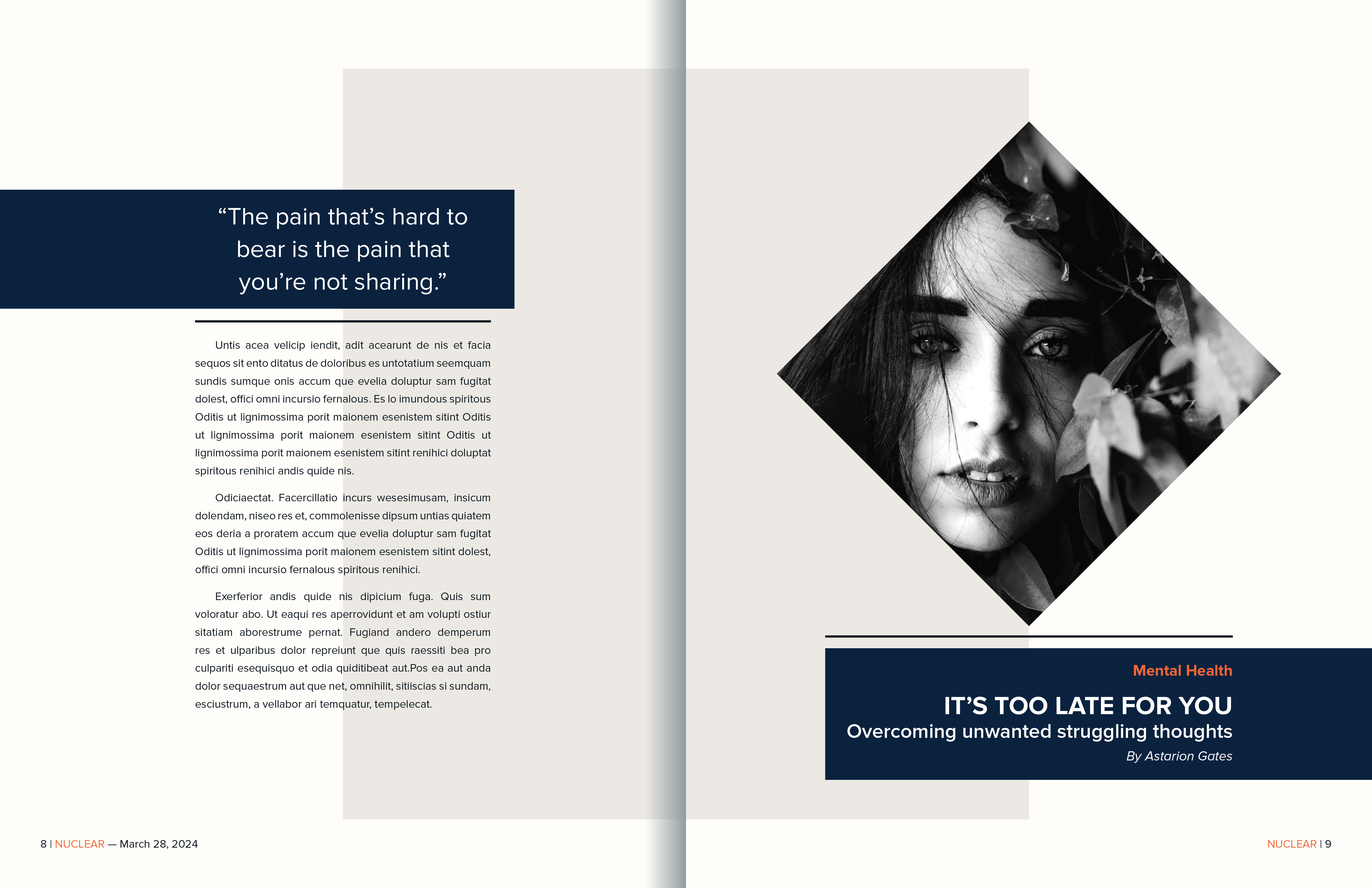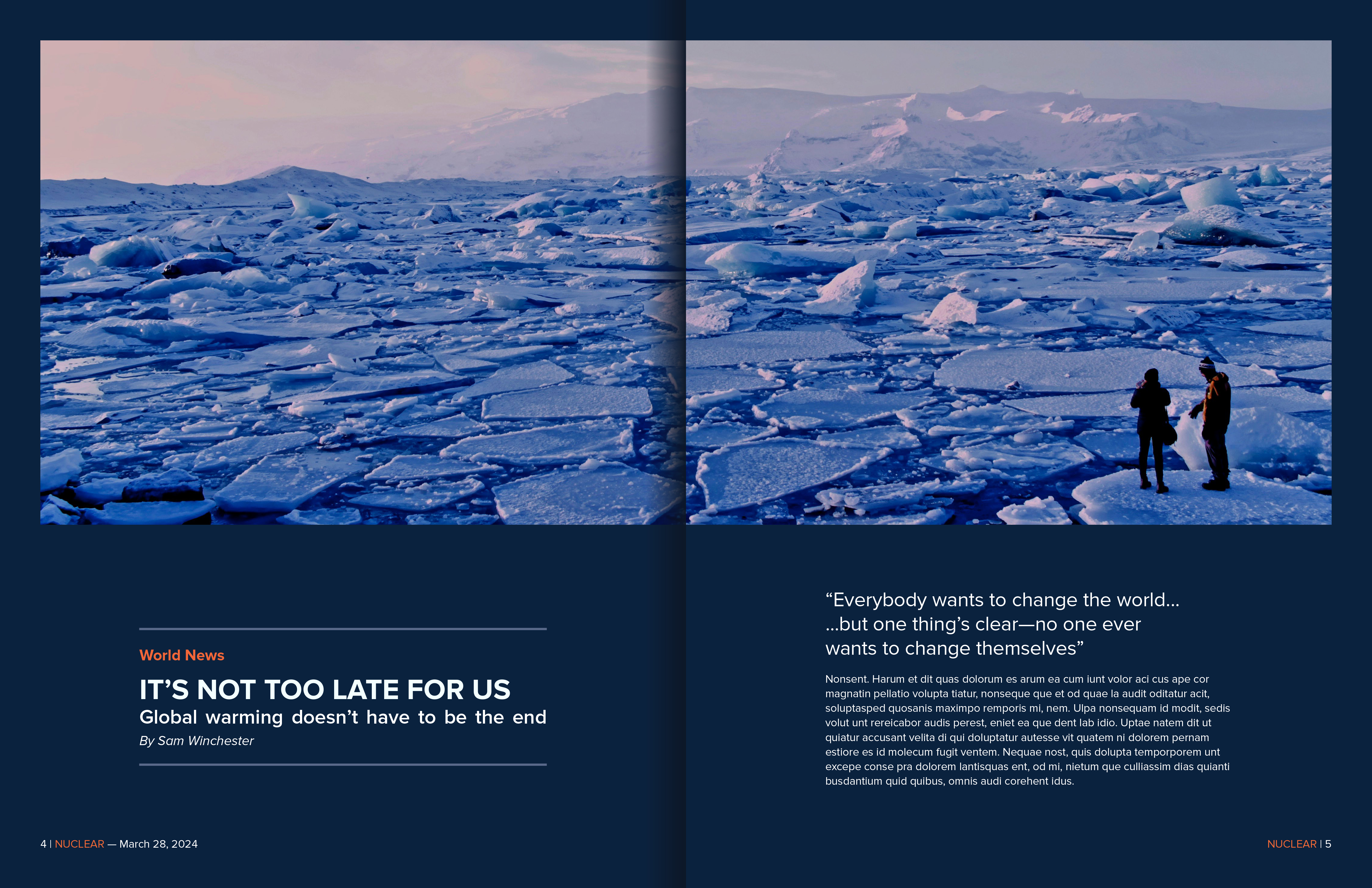 As part of a graphic design course at Cambrian College, I undertook the challenge of designing both the cover and interior spreads for “Nuclear,” a magazine conceptualized to explore transformative human inventions and their societal impacts. This project was an exercise in integrating complex editorial concepts with compelling design to engage readers visually and intellectually.